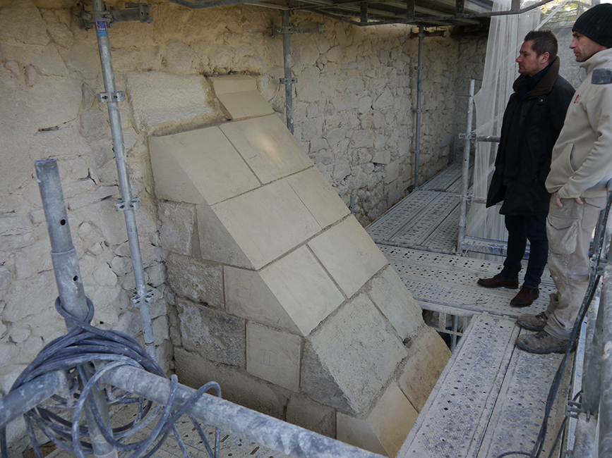 Les infiltrations du mur nord et de la toiture entrainent une restauration des maçonneries médiévales et XVIème, ainsi qu’une réfection de la couverture tuile canal (tuiles locales en courant, réemploi en chapeau).